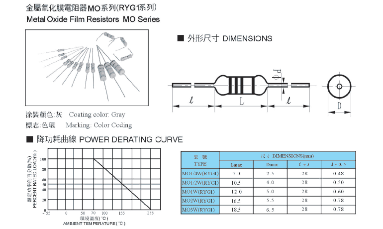 金屬氧化膜電阻器MO系列(RYG1系列)