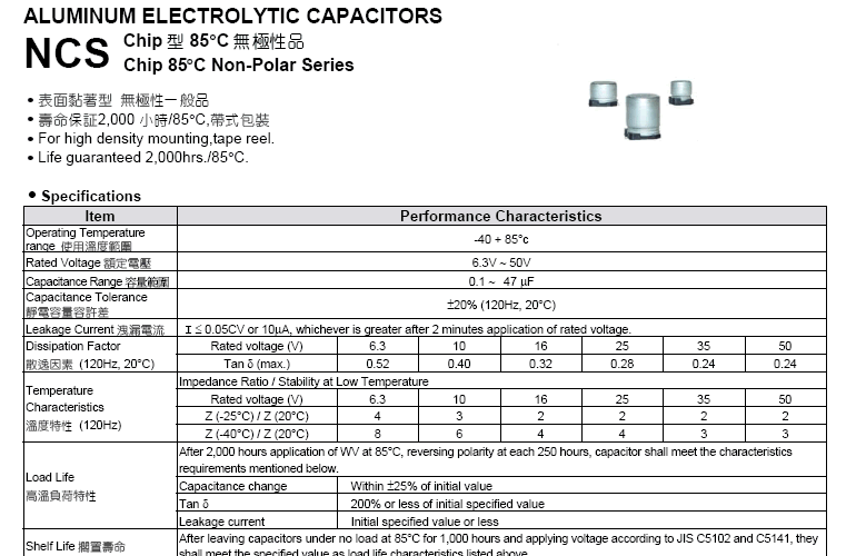 貼片型105°C標準品 GCH系列»