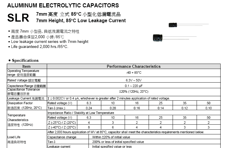 105°C 小型化 高度7mm 標準品 SHR系列»