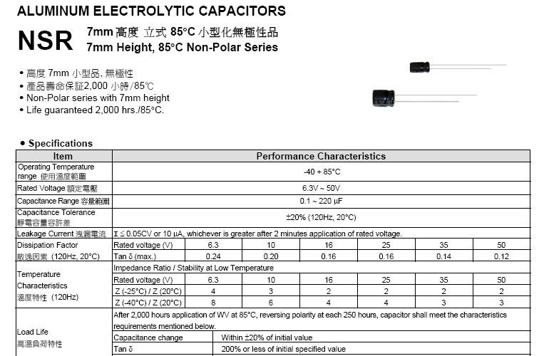«105°C 小型化 高度7mm 低阻抗 LSR系列