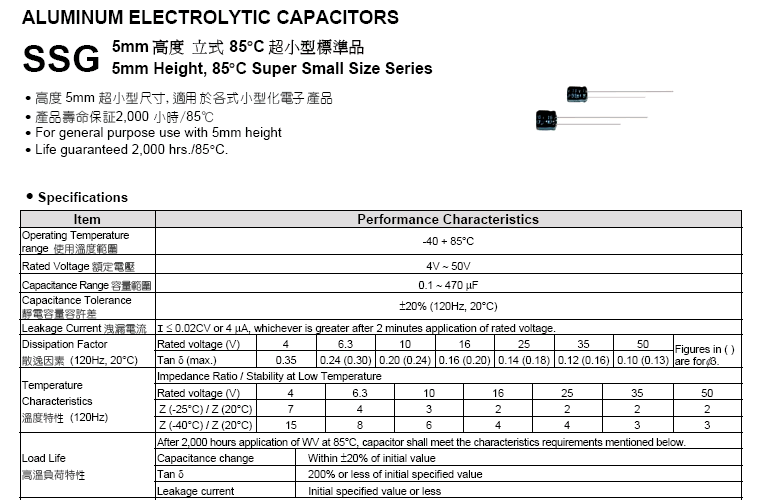 «105°C 小型化 高度5mm 標準品 SSH系列
