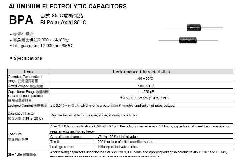 臥式85°C 雙極性品 BPA系列