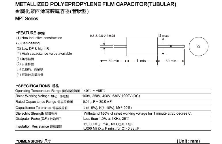 臥式扁平型金屬化聚丙烯薄膜電容器 MPA系列»